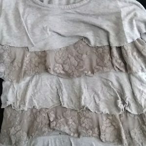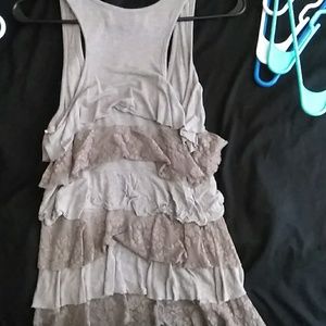Grey tank top with solid and lace ruffles on the front and back