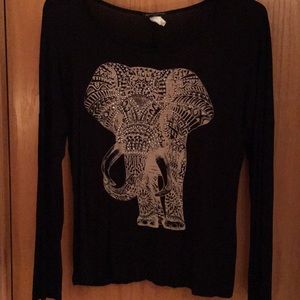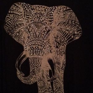 Long sleeve tee shirt type material. Has elephant print with beading around the face and ears of the elephant