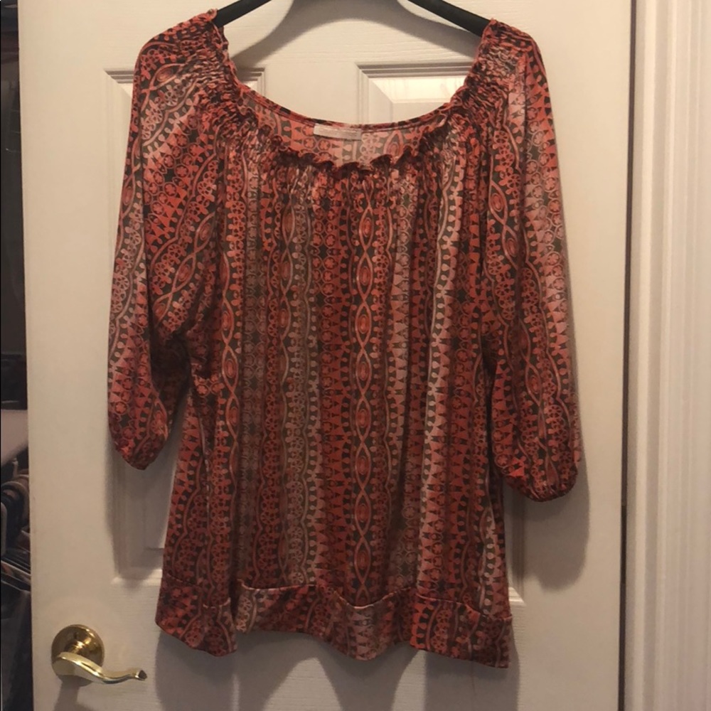 Claudia Richards shirt. Can be summer in corals or fall in browns. Easy wash & wear.