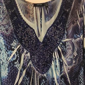 Beautiful blues & purples form this ornate shirt. Very comfortable and gets lots of complements. By Apt 9