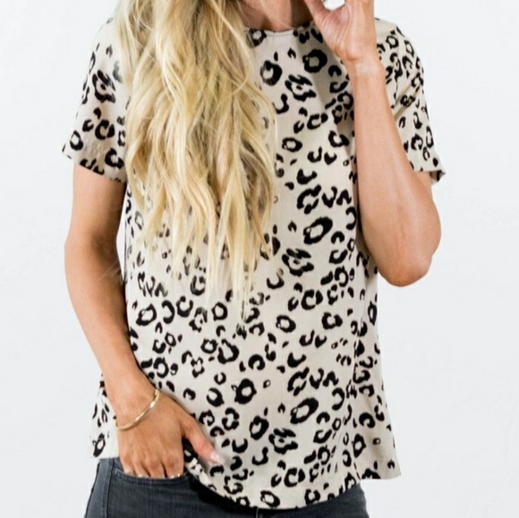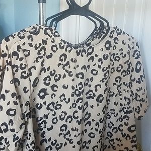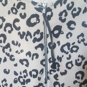 Cheetah Print Scoop Neck Top with a Leather Strip Zipper in the Back