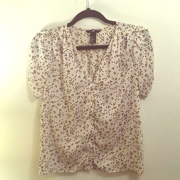 This blouse is perfect for the office. It creates a fun look with black polka dots and open sleeves!