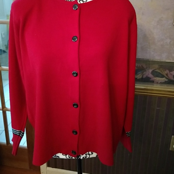 Button-down sweater Stripes toward bottom of sleeves. 100% acrylic. Never worn
