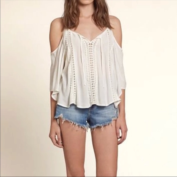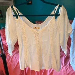 Off the shoulder, white flowy sleeve top