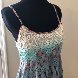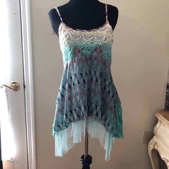 With tons of embellishments this one of a kind top mixes several styles to give it a truly unique look. Worn once it is in great condition!