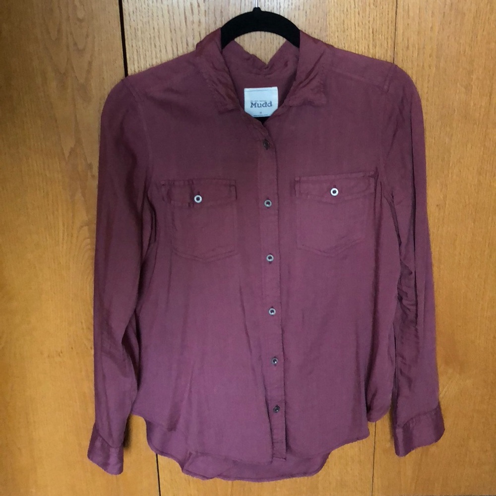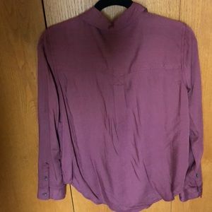 Very pretty mauve button down shirt. Lightweight and soft material, can go with anything. Material is meant to have natural wrinkles to give it a laid back casual look. Only worn a few times