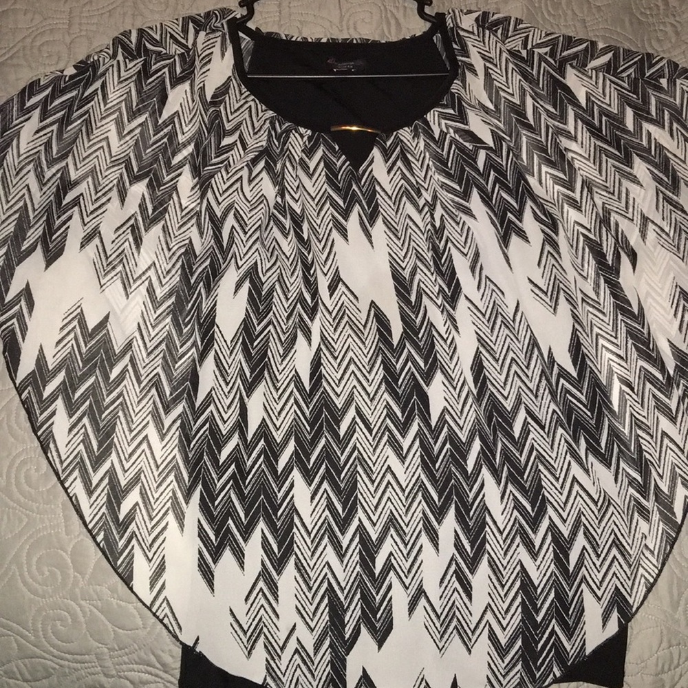 Shawl with tank top attached. Very stretchy and comfortable. Tag was ripped off with size, but fits like a 1x. No tears or stains.