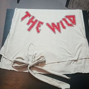 In to the wild top, cut on Sleeves, a working tie on the button of the top has 2 layerson the bottom of the top.