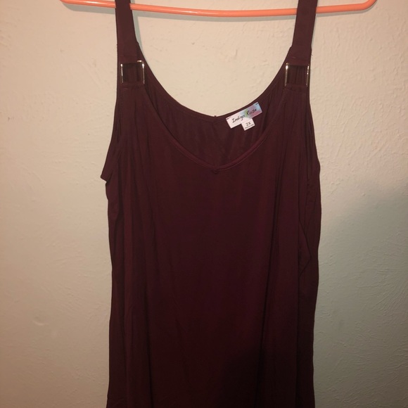 Cold shoulder, long, flowy sleeves, gold detail, color is burgundy