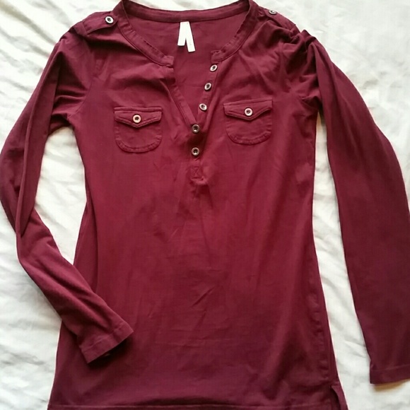 Very CUTE top! Wine colored. Buttoned v neck. Size large (fits like medium). Smoke free home.