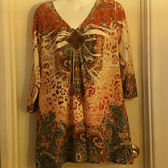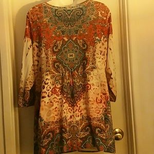 ONE WORLD beautifully printed 3/4 quatar sleeve. With embellished detail.