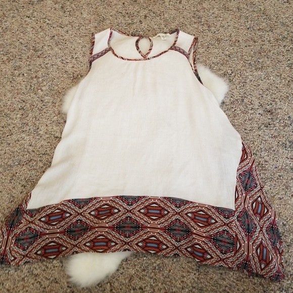 Sleeveless top with partial slit on sides. White with Aztec pattern