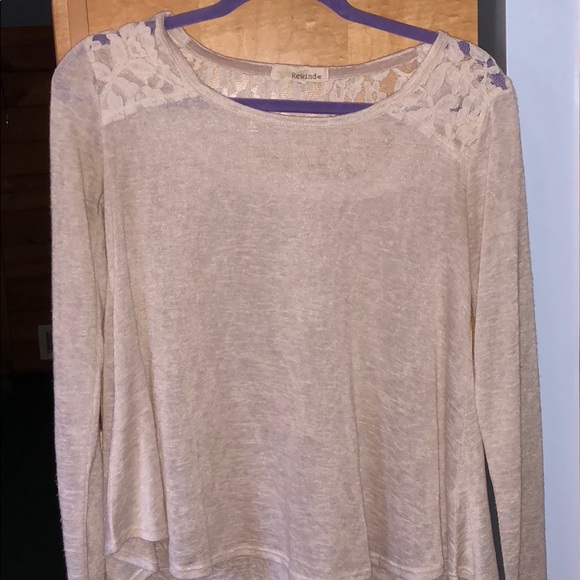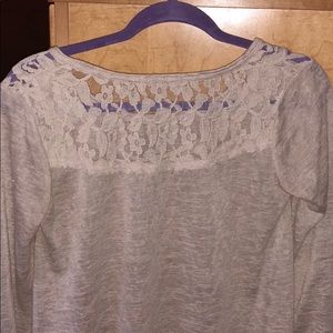 Long sleeve basic top. Lace detailing along shoulders. Worn once