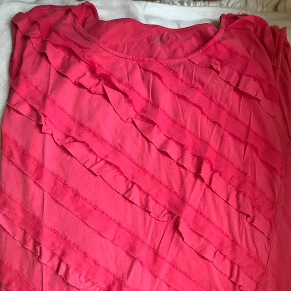 LOFT bright pink cap sleeve top with diagonal textured design