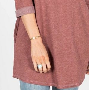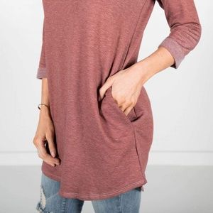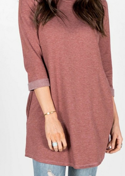 Mauve pink sweater crew long top with pockets and 3/4 sleeve