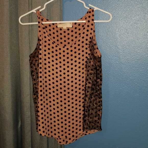 Tan with black polka dots and lace on sides