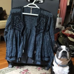 Blue top with black embroidery. Two ties in the front. Great condition, never worn.