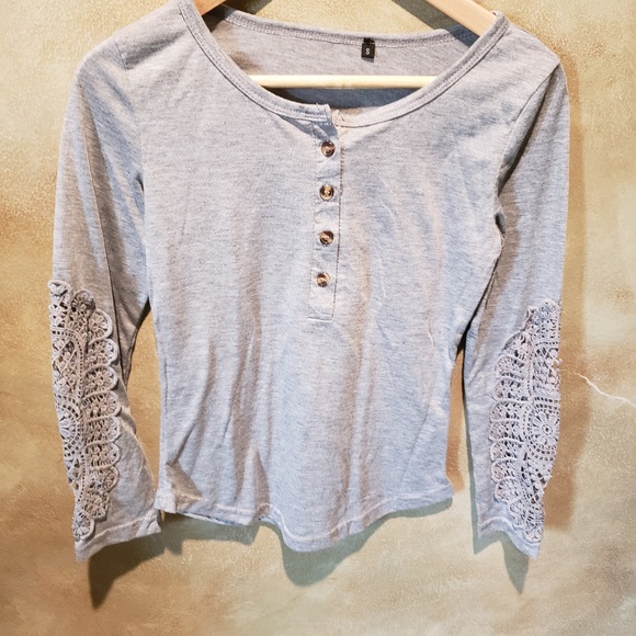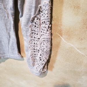 Tee with beautiful crochet sleeves.