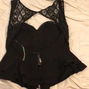 Black stretchy. Lace shoulders l. Low cleavage low back