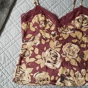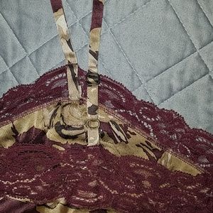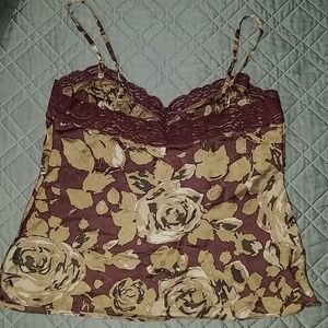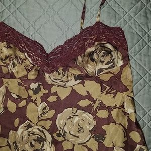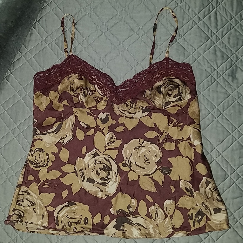 100% silk lingerie/tank top with adjustable straps Dark maroon background combined with beige like roses