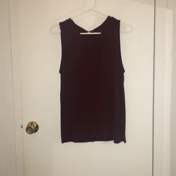 Maroon soft cotton tank top with ribbed neckline and stitching down center