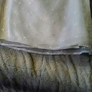 Sheer eyelet design sleeveless top with little pearleasanct side buttons.This top has a white satin insert.