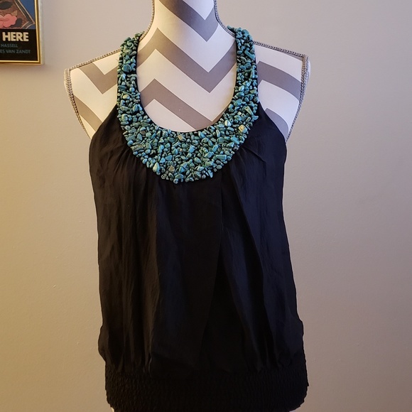 Black tank top with green stones embellishedfront and jack with t back.