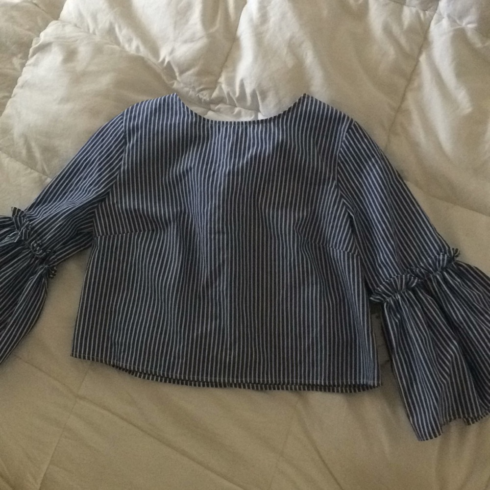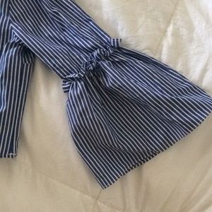 Navy blue and white striped top with poofy ruffled sleeves! Never worn before