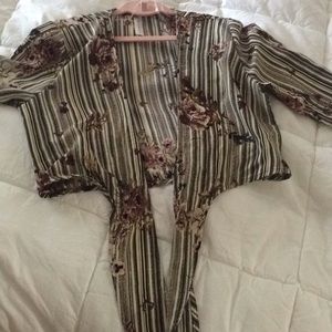 Tie in the front Crop top. Striped and flowered pattern.