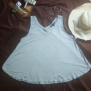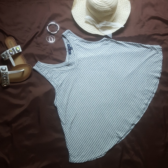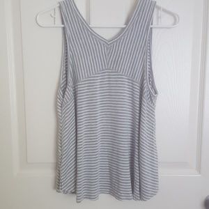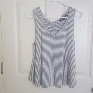 Gray and white striped sleeveless v-neck shirt. Very soft fabric, never worn.