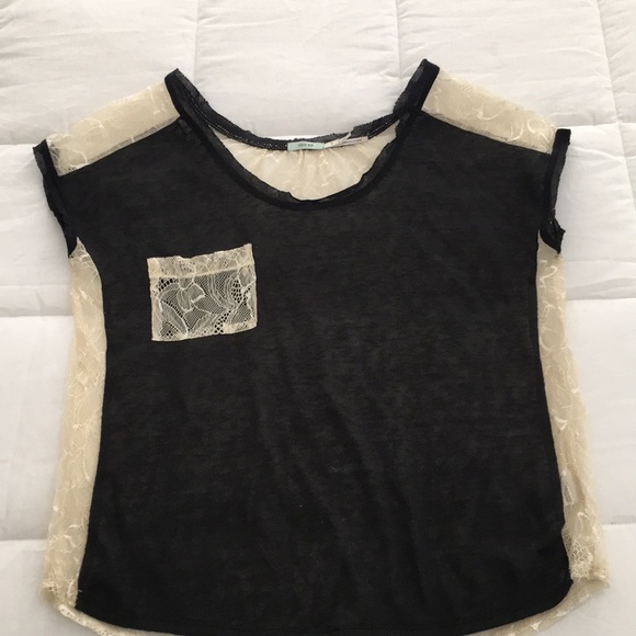 Black lace top. The back is solid lace in a cream color. Excellent condition. Smoke free, dog free home.
