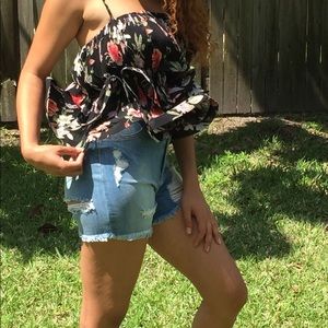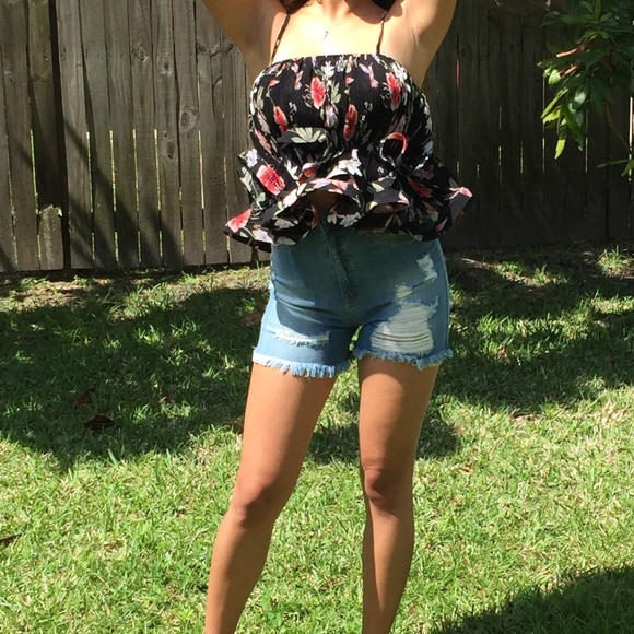 Floral Peplum Top with Adjustable Straps