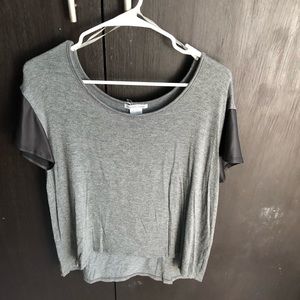 Grey cotton top with faux leather sleeves