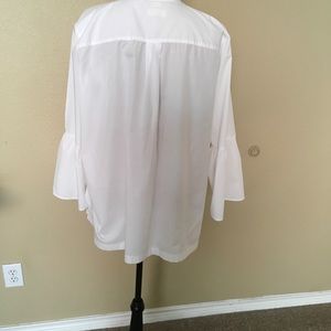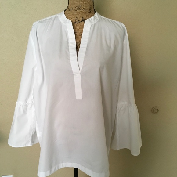 Crisp white bell sleeve top.