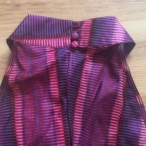 Shades if purple and pink. Comes with belt. High neck that buttons in the back. Never worn.