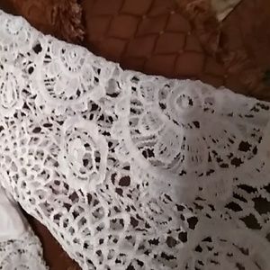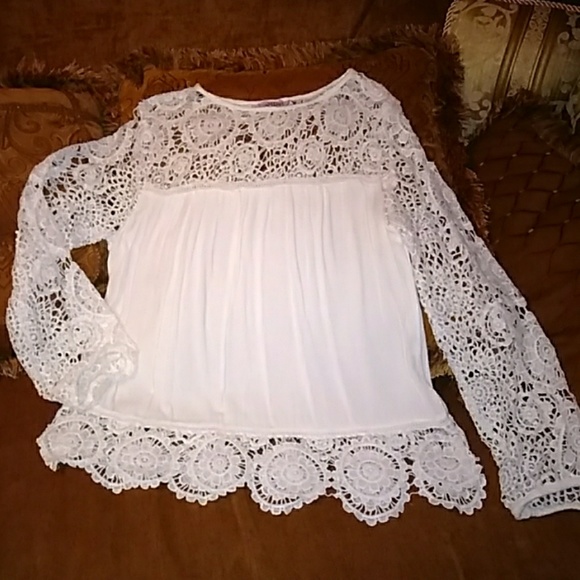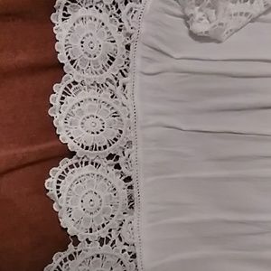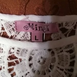 Feminine White Mimi Brand Top with chrochet details.