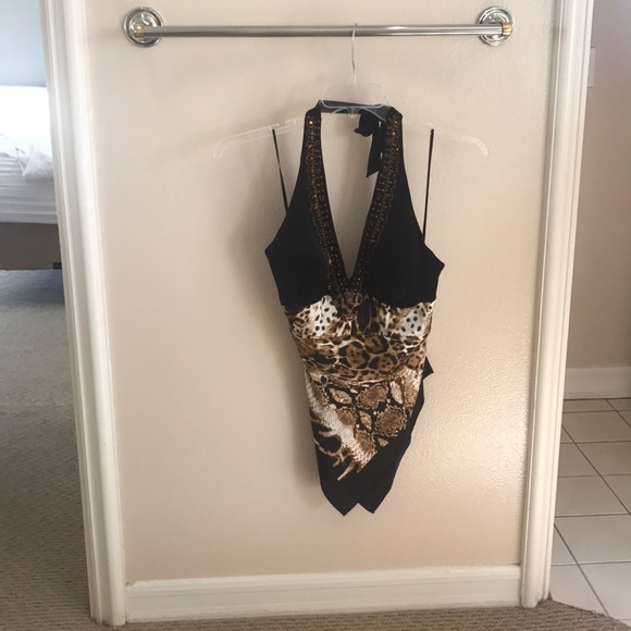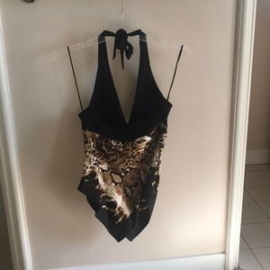 Black leopard halter top
