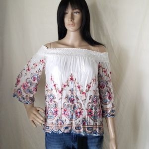 Off white off the shoulder blouse with beautiful embroidery design