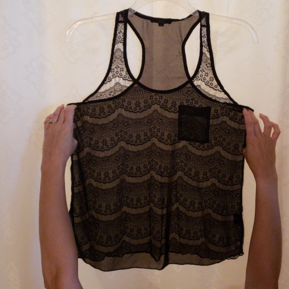 Black sheer top with a pocket. Very cute. Sheer solid back.