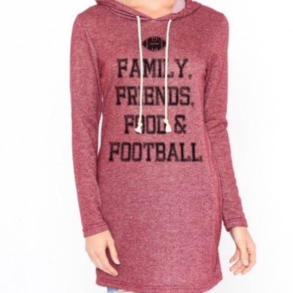 "Family, Friends, Food & Football" Printed, Long Hoodie Top. Brand New.