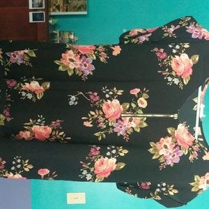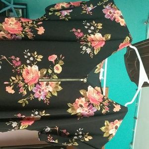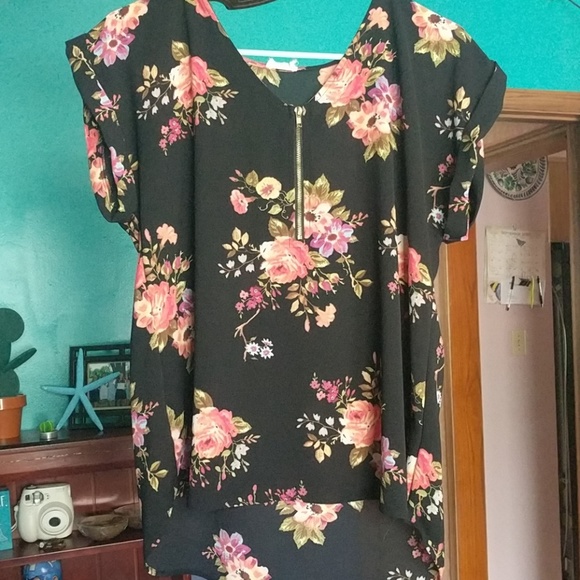Lovely flowery loose fitting shirt! Great colors for summer! Easy and very light weight! Only worn a handful of times and is in excellent condition!
