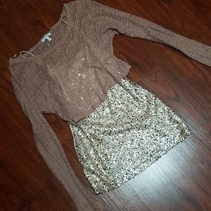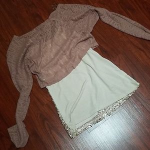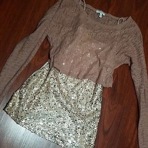 Two piece set, Sequined, pink. Good condition. Front as minor fringing appearing.