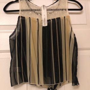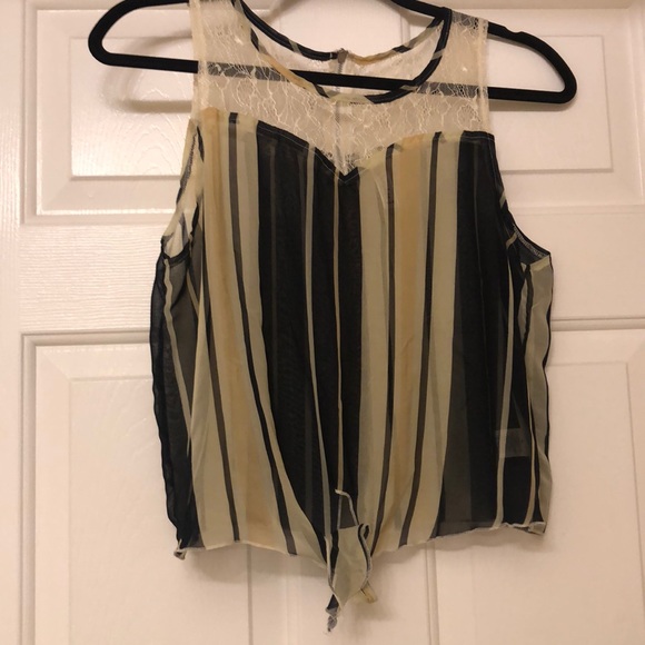 See through stripped pattern with a knot in the front a zipper in the back of the shirt