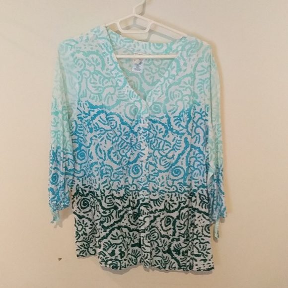 Multi blue tunic. 3/4 sleeves with ties. Size 2X