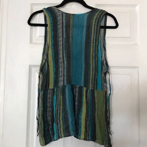 Comfortable flow style top. Draw string arm holes. No size tag but fits like a loose small or a tighter medium
