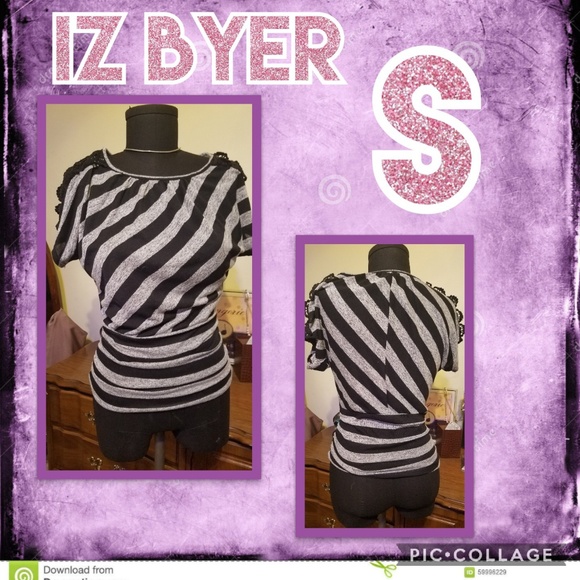 Grey and black striped fitted waist Lacy shoulders