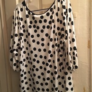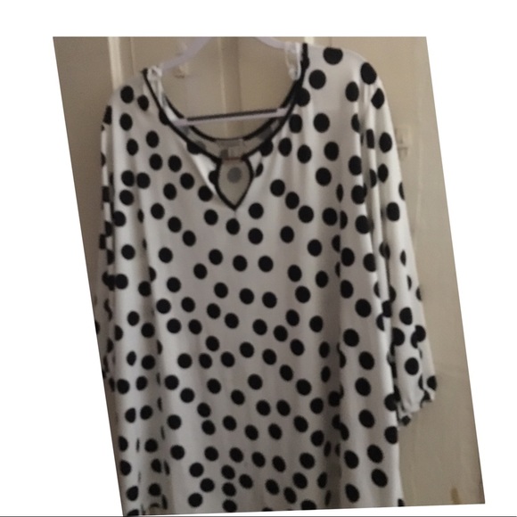 White with black poky-dots 3/4 sleeve silky smooth texture
