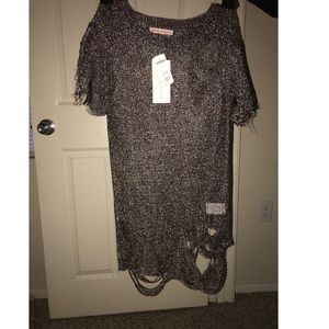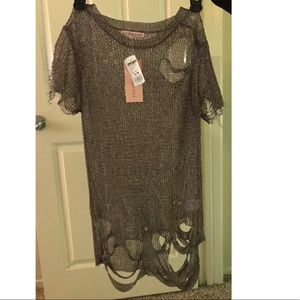 Dark gray bronzy color material is in photo very cute and different! Photo does it no justice