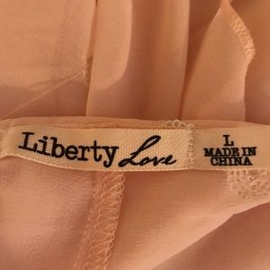Ballet pink with gold polka dots, keyhole arms with blousy sleeves.