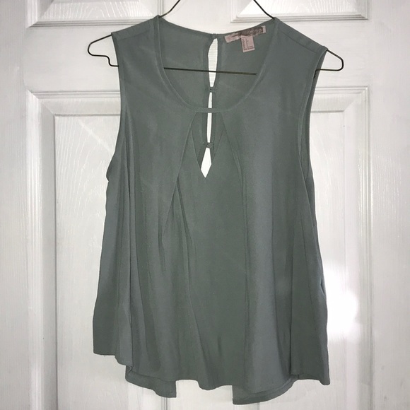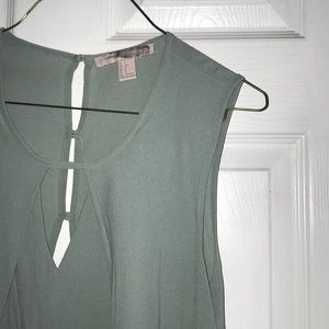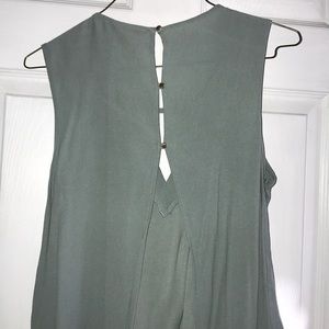 Flowy top with key whole cut out in front. Open back with detailed buttons. Seafoam green.